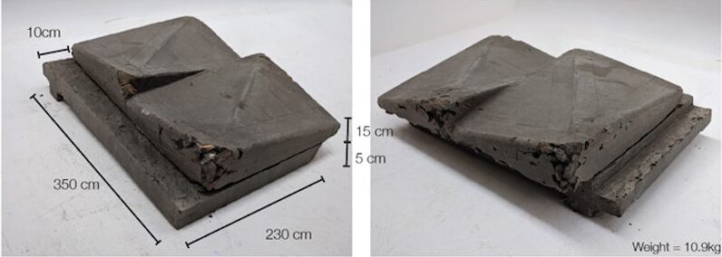 Om het gewicht op de poreuze laag te beperken wordt de tegel in twee lagen gestort, waarna ze wanneer ze enigszins vormvast zijn op elkaar worden gezet (na 4 uur uitharden). Alsnog is dit gewicht te zwaar en zakt de poreuze laag in.