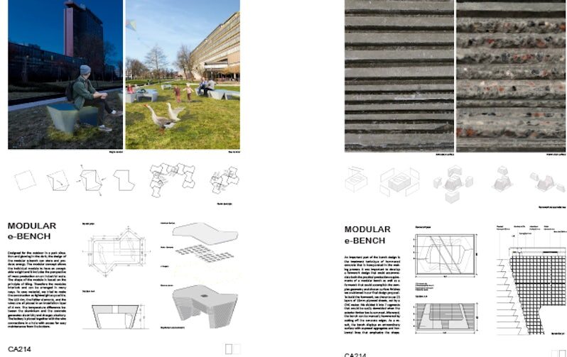 CA214 Modular e-bench is ingediend door Nigel Flanagan, Bethany Kiss, Sofia Pavlova, Leon Thormann van de TU Delft.