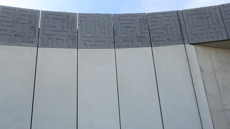 Tien meter hoge antracietkleurige prefab betonelementen, die samen een doorlopend patroon vormen van bijna 4.000 m². Een waar esthetisch huzarenstukje, dat je blik vangt als je het Prinses Amaliaviaduct (onderdeel van de N15) op de Tweede Maasvlakte bij Rotterdam passeert.