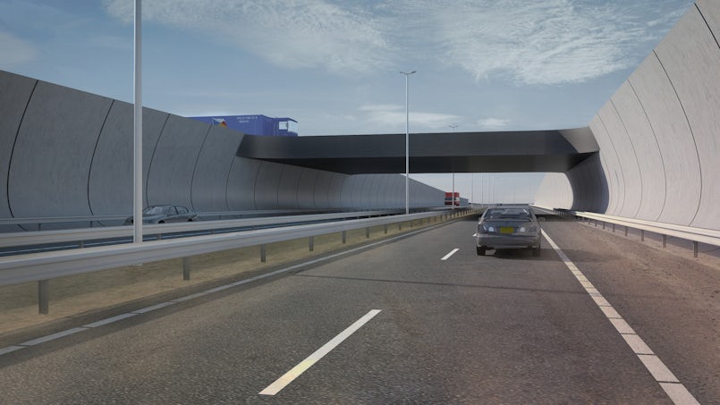 De weg gaat als het ware op in het landschap. Dit komt omdat de keerwanden organisch zijn vormgegeven. Er is heel bewust gekozen voor een zekere kromming. De elementen in de dekken van de viaducten zijn zelfs dubbelgekromd, waar ze de gekromde keerwanden doorsnijden. Ook het kleurgebruik is opmerkelijk: donkergrijs en bijna spierwit beton komen elkaar exact tegen op de plek waar keerwand viaduct ontmoet.