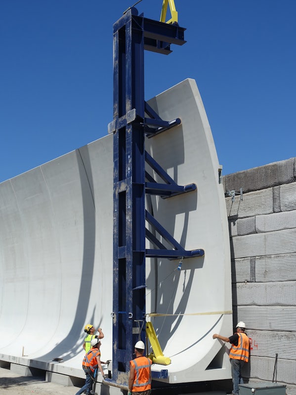 Vanwege de hoge esthetische eisen aan dit project, stelde hoofdaannemer Boskalis een zogenoemd ‘E-team’ samen. ‘Een esthetisch betonteam!’ Een unicum, volgens Henk. In het team zaten vertegenwoordigers van alle betrokken partijen in het bouwproces. Dit team heeft werk- en keuringsplannen per type prefab beton opgesteld. Zo is bijvoorbeeld de manier van betonstorten bij de productie van de prefab elementen van A tot Z vastgelegd in een plan van aanpak.